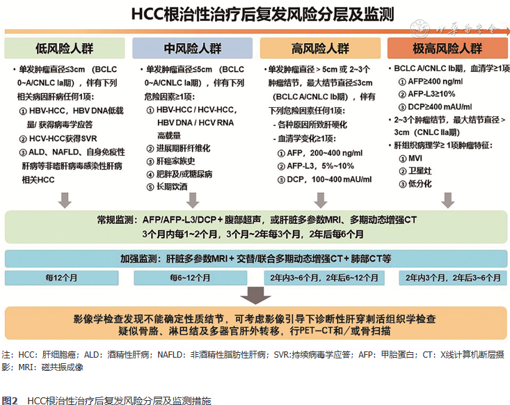 图2HCC根治性治疗后复发风险分层及监测措施