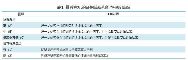 表1 推荐意见的证据等级和推荐强度等级