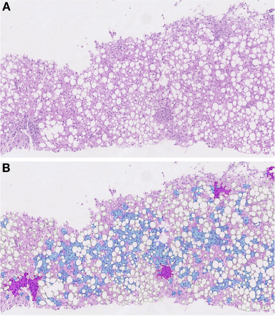 - 病理学家使用非酒精性脂肪性肝炎临床研究网络标准对活检标本进行独立评分,并进行数字化。