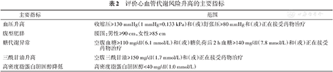 表2 评价心血管代谢风险升高的主要指标