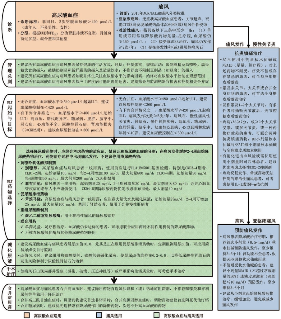 [18]YuKH, ChenDY, ChenJH, et al. Management of gout and hyperuricemia: Multidisciplinary consensus in Taiwan[J]. Int J Rheum Dis, 2018, 21(4): 772-787. DOI: 10.1111/1756-185X.13266.