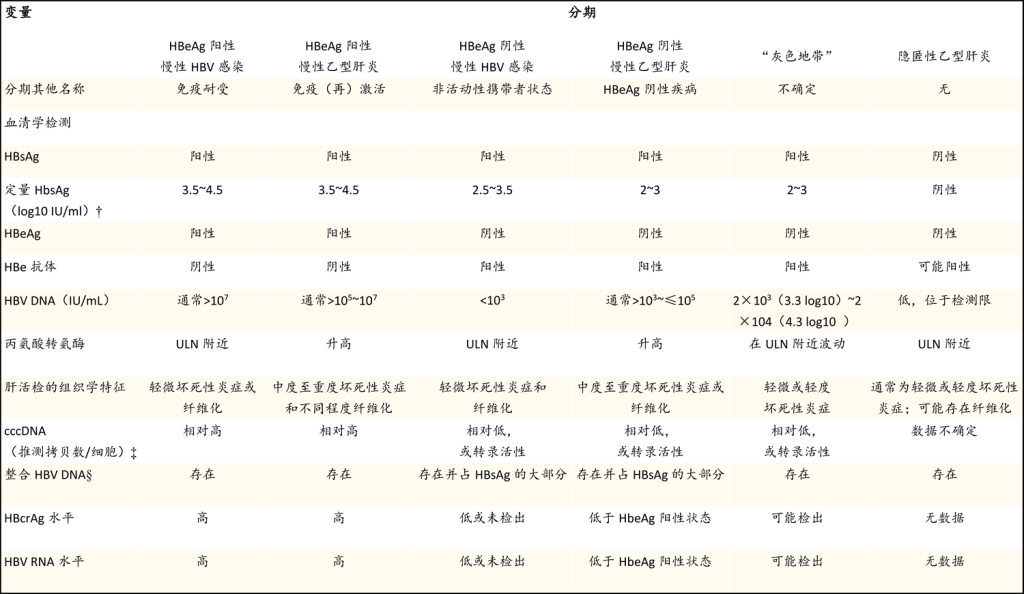表1. 乙型肝炎病毒(HBV)感染的分期、命名和生物标志物*