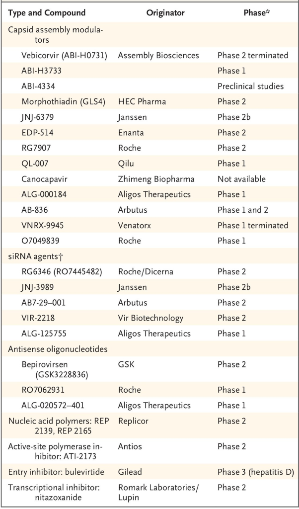 表2. 处于临床开发阶段的新型抗HBV化合物